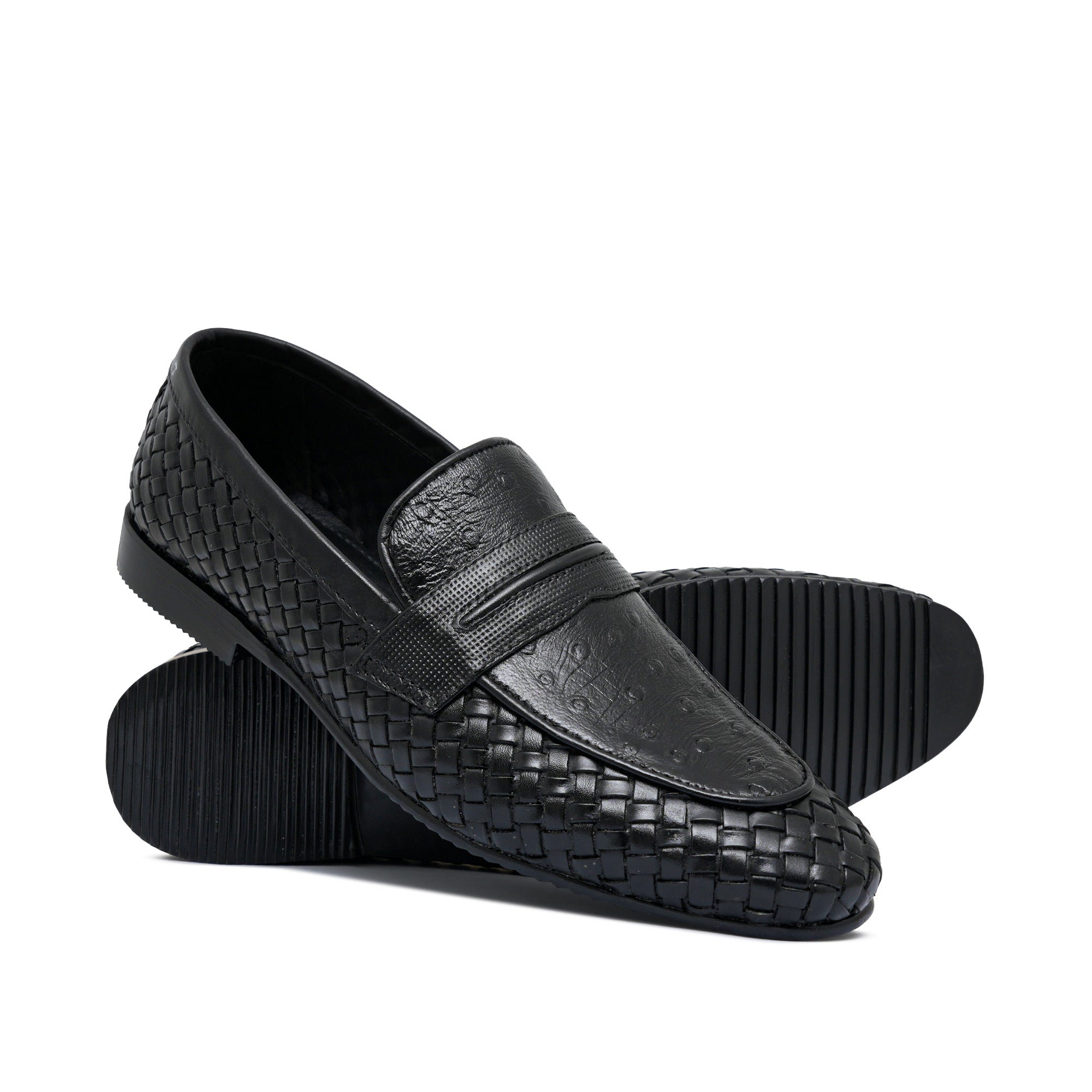 Black Woven Leather Shoe Ph14