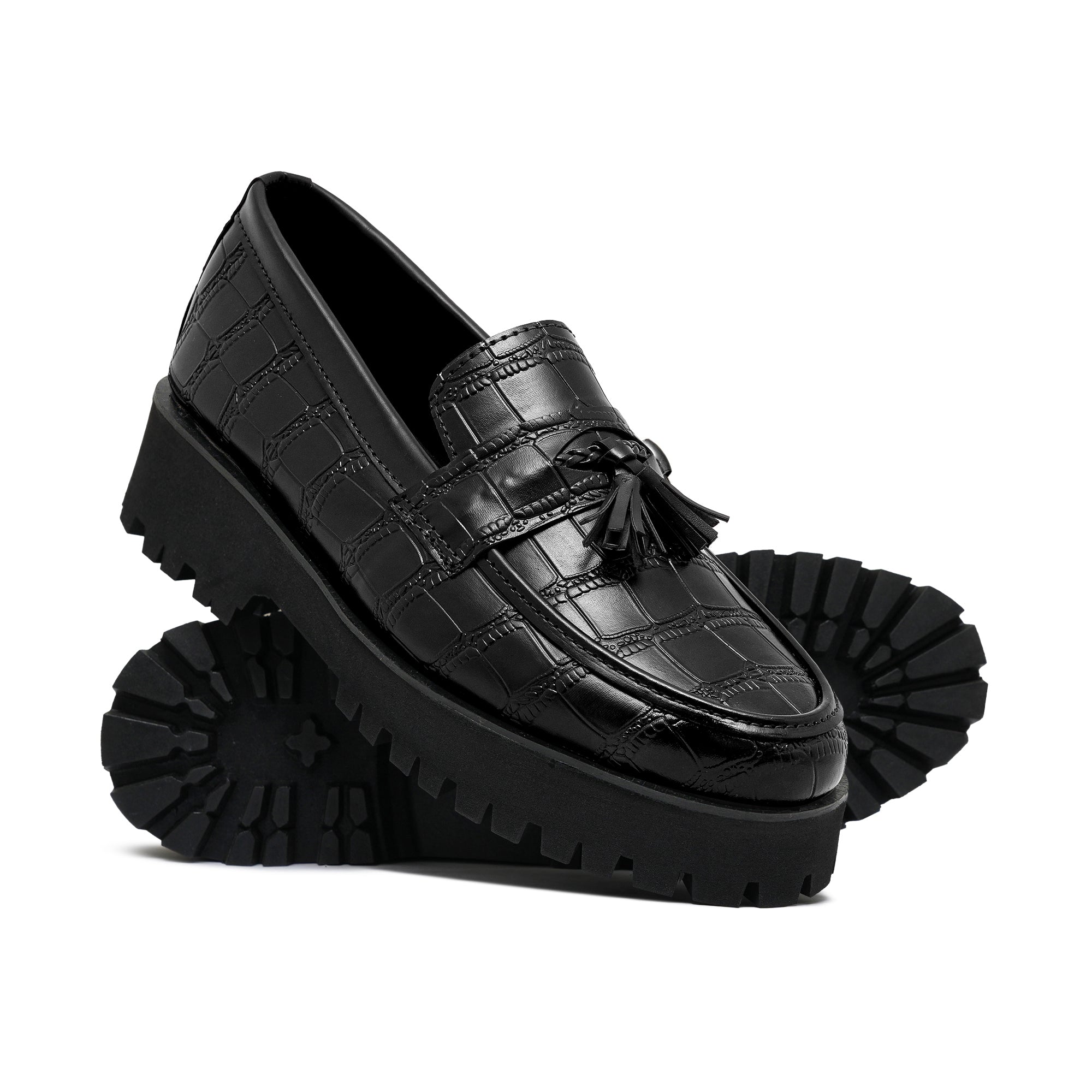 High Sole Black Croc Shoe FU06