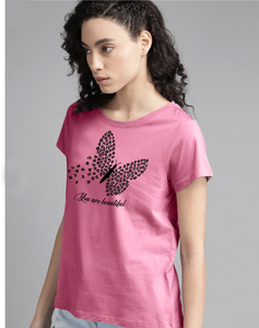 Be the first to review “JUGULAR Printed Women Round Neck Pink T-Shirt”