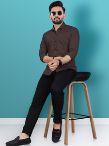 VeBNoR Men Solid Casual Brown Shirt